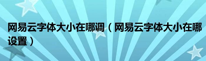 大家好,跳跳为你解答以上问题。网易云字体大小在哪调,网易云字体大小在哪设置这个问题很多人还不知道,现在让我们一起来看看吧!