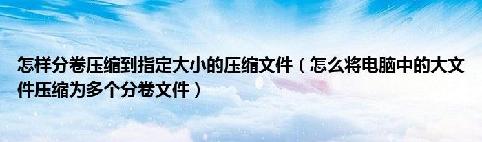 大家好,今天小悦来为大家解答以上问题。怎样分卷压缩到指定大小的压缩文件,怎么将电脑中的大文件压缩为多个分卷文件很多人还不知道,现在让我们一起来看看吧!