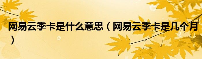 大家好,跳跳为你解答以上问题。网易云季卡是什么意思,网易云季卡是几个月这个问题很多人还不知道,现在让我们一起来看看吧!