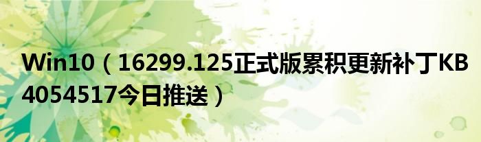 大家好,今天小悦来为大家解答以上问题。Win10,16299.125正式版累积更新补丁KB4054517今日推送很多人还不知道,现在让我们一起来看看吧!