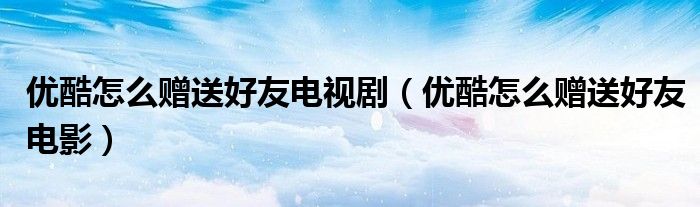 大家好,跳跳为你解答以上问题。优酷怎么赠送好友电视剧,优酷怎么赠送好友电影这个问题很多人还不知道,现在让我们一起来看看吧!