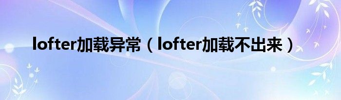 大家好,跳跳为你解答以上问题。lofter加载异常,lofter加载不出来这个问题很多人还不知道,现在让我们一起来看看吧!