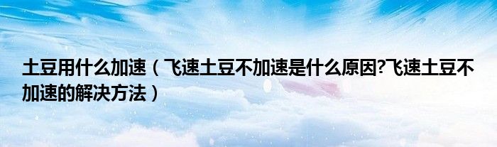 大家好,今天小悦来为大家解答以上问题。土豆用什么加速,飞速土豆不加速是什么原因?飞速土豆不加速的解决方法很多人还不知道,现在让我们一起来看看吧!