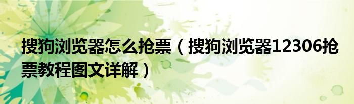 大家好,今天小悦来为大家解答以上问题。搜狗浏览器怎么抢票,搜狗浏览器12306抢票教程图文详解很多人还不知道,现在让我们一起来看看吧!