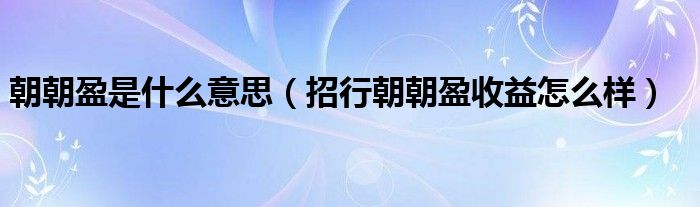 朝朝盈是什么?朝朝盈收益怎么样?