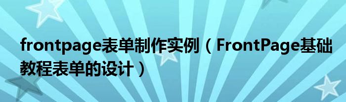 大家好,今天小悦来为大家解答以上问题。frontpage表单制作实例,FrontPage基础教程表单的设计很多人还不知道,现在让我们一起来看看吧!