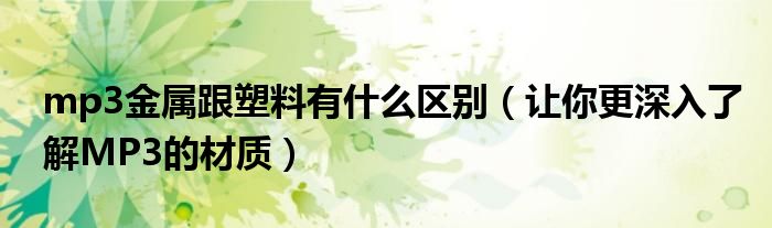 大家好,今天小悦来为大家解答以上问题。mp3金属跟塑料有什么区别,让你更深入了解MP3的材质很多人还不知道,现在让我们一起来看看吧!
