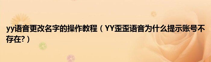 大家好,今天小悦来为大家解答以上问题。yy语音更改名字的操作教程,YY歪歪语音为什么提示账号不存在?很多人还不知道,现在让我们一起来看看吧!