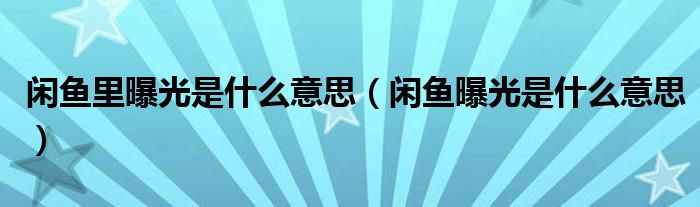 大家好,跳跳为你解答以上问题。闲鱼里曝光是什么意思,闲鱼曝光是什么意思这个问题很多人还不知道,现在让我们一起来看看吧!