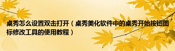 大家好,今天小悦来为大家解答以上问题。桌秀怎么设置双击打开,桌秀美化软件中的桌秀开始按钮图标修改工具的使用教程很多人还不知道,现在让我们一起来看看吧!