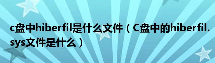 大家好,今天小悦来为大家解答以上问题。c盘中hiberfil是什么文件,C盘中的hiberfil.sys文件是什么很多人还不知道,现在让我们一起来看看吧!