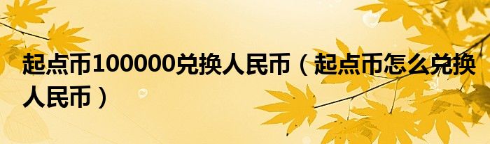 大家好,今天小悦来为大家解答以上问题。起点币100000兑换人民币,起点币怎么兑换人民币很多人还不知道,现在让我们一起来看看吧!