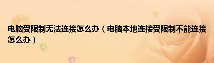 大家好,今天小悦来为大家解答以上问题。电脑受限制无法连接怎么办,电脑本地连接受限制不能连接怎么办很多人还不知道,现在让我们一起来看看吧!