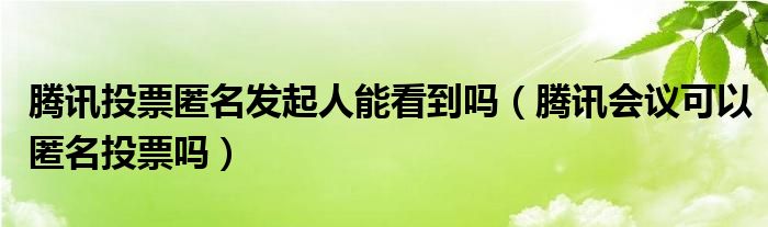 大家好,跳跳为你解答以上问题。腾讯投票匿名发起人能看到吗,腾讯会议可以匿名投票吗这个问题很多人还不知道,现在让我们一起来看看吧!