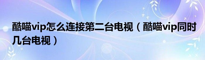 大家好,跳跳为你解答以上问题。酷喵vip怎么连接第二台电视,酷喵vip同时几台电视这个问题很多人还不知道,现在让我们一起来看看吧!