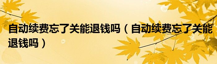 大家好,跳跳为你解答以上问题。自动续费忘了关能退钱吗,自动续费忘了关能退钱吗这个问题很多人还不知道,现在让我们一起来看看吧!