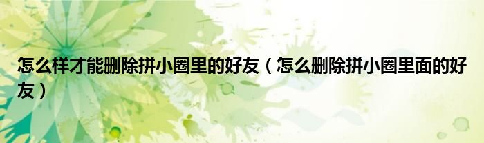 大家好,跳跳为你解答以上问题。怎么样才能删除拼小圈里的好友,怎么删除拼小圈里面的好友这个问题很多人还不知道,现在让我们一起来看看吧!