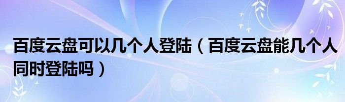 大家好,今天小悦来为大家解答以上问题。百度云盘可以几个人登陆,百度云盘能几个人同时登陆吗很多人还不知道,现在让我们一起来看看吧!