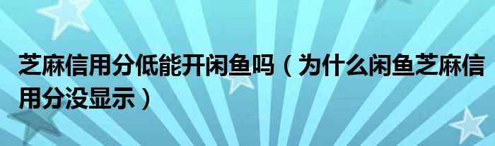大家好,跳跳为你解答以上问题。芝麻信用分低能开闲鱼吗,为什么闲鱼芝麻信用分没显示这个问题很多人还不知道,现在让我们一起来看看吧!