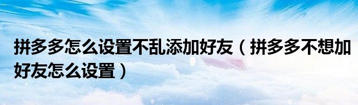 拼多多怎么设置不乱添加好友(拼多多不想加好友怎么设置)