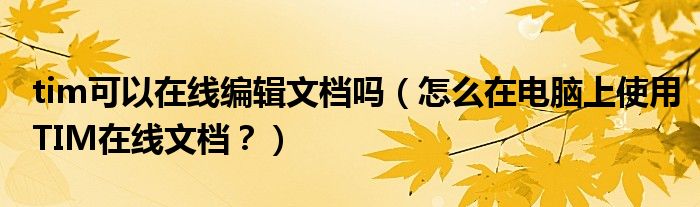 大家好,今天小悦来为大家解答以上问题。tim可以在线编辑文档吗,怎么在电脑上使用TIM在线文档?很多人还不知道,现在让我们一起来看看吧!