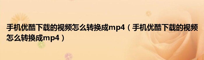 大家好,跳跳为你解答以上问题。手机优酷下载的视频怎么转换成mp4,手机优酷下载的视频怎么转换成mp4这个问题很多人还不知道,现在让我们一起来看看吧!