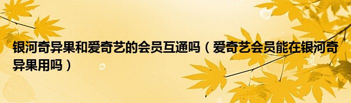 大家好,跳跳为你解答以上问题。银河奇异果和爱奇艺的会员互通吗,爱奇艺会员能在银河奇异果用吗这个问题很多人还不知道,现在让我们一起来看看吧!