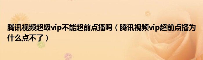 大家好,跳跳为你解答以上问题。腾讯视频超级vip不能超前点播吗,腾讯视频vip超前点播为什么点不了这个问题很多人还不知道,现在让我们一起来看看吧!