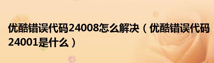 大家好,跳跳为你解答以上问题。优酷错误代码24008怎么解决,优酷错误代码24001是什么这个问题很多人还不知道,现在让我们一起来看看吧!
