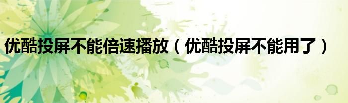 优酷投屏不能倍速播放(优酷投屏不能用了)