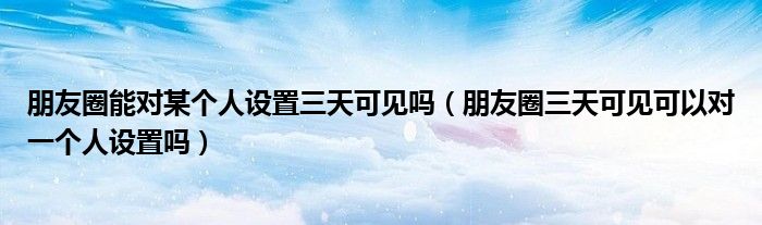 大家好,熊熊为你解答以上问题。朋友圈能对某个人设置三天可见吗,朋友圈三天可见可以对一个人设置吗这个很多人还不知道,现在让我们一起来看看吧!