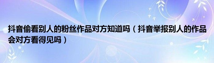 大家好,熊熊为你解答以上问题。抖音偷看别人的粉丝作品对方知道吗,抖音举报别人的作品会对方看得见吗这个很多人还不知道,现在让我们一起来看看吧!