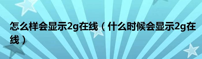 大家好,小晋来为大家解答以下问题,关于怎么样会显示2g在线,什么时候会显示2g在线很多人还不知道,今天让我们一起来看看吧!