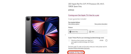 从上面的屏幕快照中可以看到,新的iPad Pro(和带有M1的新iMac)将于5月21日上市。这是一个星期五,因此很有意义-Apple喜欢星期五发布。它距离4月30日的预购开始日期还差得很远,但是正如我们上面所说,您可能应该为此归咎于全球芯片短缺。同样,如果您想要一台新的iPad或iMac,但暂时找不到库存。