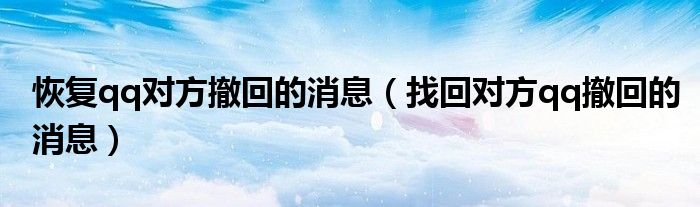 大家好,小晋来为大家解答以下问题,关于恢复qq对方撤回的消息,找回对方qq撤回的消息很多人还不知道,今天让我们一起来看看吧!