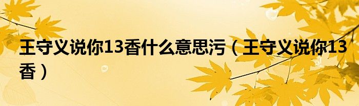 大家好,小晋来为大家解答以下问题,关于王守义说你13香什么意思污,王守义说你13香很多人还不知道,今天让我们一起来看看吧!