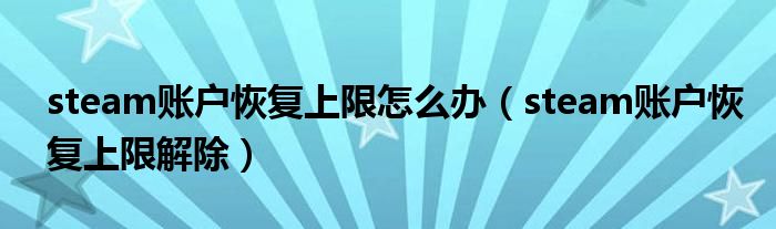 大家好,小晋来为大家解答以下问题,关于steam账户恢复上限怎么办,steam账户恢复上限解除很多人还不知道,今天让我们一起来看看吧!