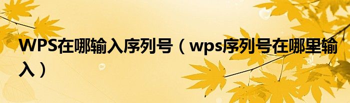 关于WPS在哪输入序列号,wps序列号在哪里输入这个很多人还不知道,今天菲菲来为大家解答以上的问题,现在让我们一起来看看吧!