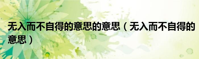 大家好,小晋来为大家解答以下问题,关于无入而不自得的意思的意思,无入而不自得的意思很多人还不知道,今天让我们一起来看看吧!