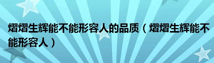 大家好,小晋来为大家解答以下问题,关于熠熠生辉能不能形容人的品质,熠熠生辉能不能形容人很多人还不知道,今天让我们一起来看看吧!
