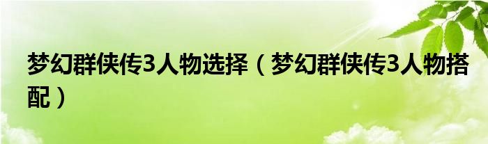 关于梦幻群侠传3人物选择,梦幻群侠传3人物搭配这个很多人还不知道,今天菲菲来为大家解答以上的问题,现在让我们一起来看看吧!