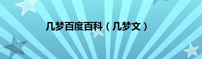 大家好,小晋来为大家解答以下问题,关于几梦百度百科,几梦文很多人还不知道,今天让我们一起来看看吧!