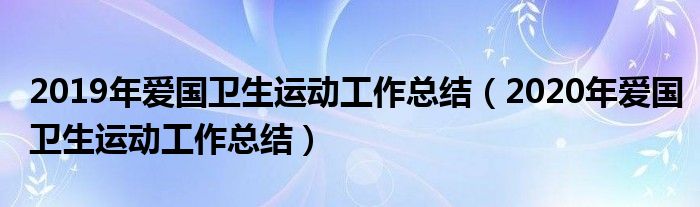 关于2019年爱国卫生运动工作总结,2020年爱国卫生运动工作总结这个很多人还不知道,今天菲菲来为大家解答以上的问题,现在让我们一起来看看吧!