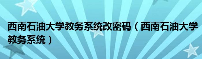 关于西南石油大学教务系统改密码,西南石油大学教务系统这个很多人还不知道,今天菲菲来为大家解答以上的问题,现在让我们一起来看看吧!