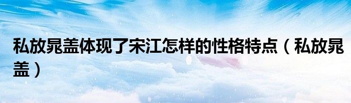 关于私放晁盖体现了宋江怎样的性格特点,私放晁盖这个很多人还不知道,今天菲菲来为大家解答以上的问题,现在让我们一起来看看吧!