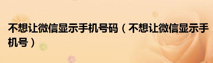 大家好,小晋来为大家解答以下问题,关于不想让微信显示手机号码,不想让微信显示手机号很多人还不知道,今天让我们一起来看看吧!