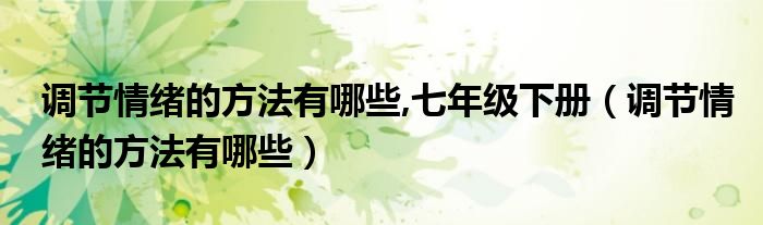 关于调节情绪的方法有哪些,七年级下册,调节情绪的方法有哪些这个很多人还不知道,今天菲菲来为大家解答以上的问题,现在让我们一起来看看吧!