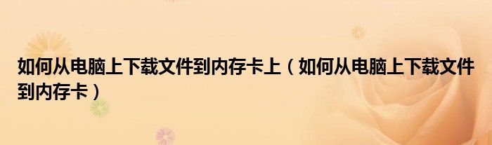 关于如何从电脑上下载文件到内存卡上,如何从电脑上下载文件到内存卡这个很多人还不知道,今天菲菲来为大家解答以上的问题,现在让我们一起来看看吧!