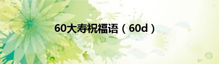 大家好,来宝来为大家解答以下问题,60大寿祝福语,60d很多人还不知道,今天让我们一起来看看吧!
