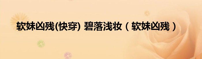 关于软妹凶残(快穿) 碧落浅妆,软妹凶残这个很多人还不知道,今天菲菲来为大家解答以上的问题,现在让我们一起来看看吧!